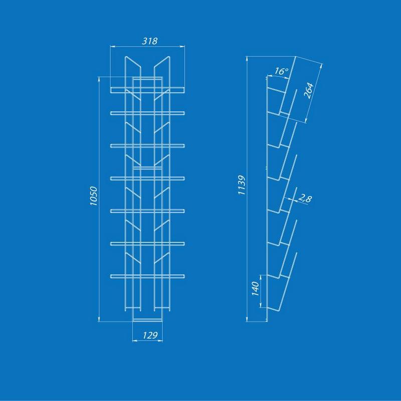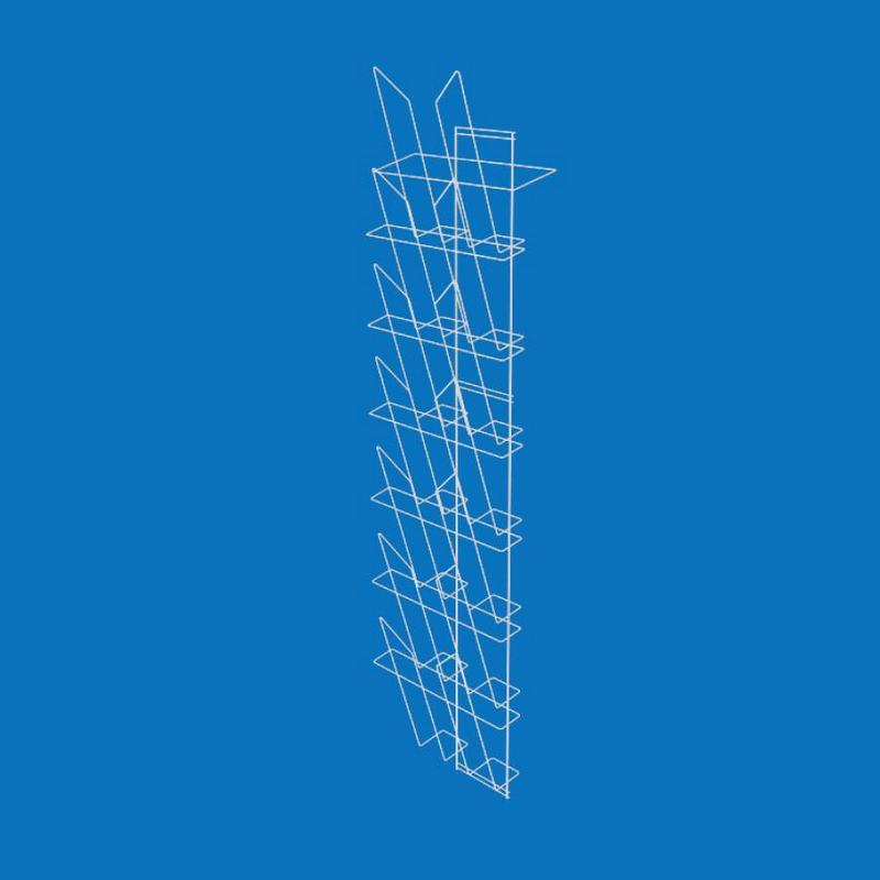 Дисплей предназначен для установки на наклонные и вращающиеся напольные основы, а также используется как самостоятельный торговый стенд. Все металлические элементы стенда окрашены в белый цвет методом порошкового нанесения.