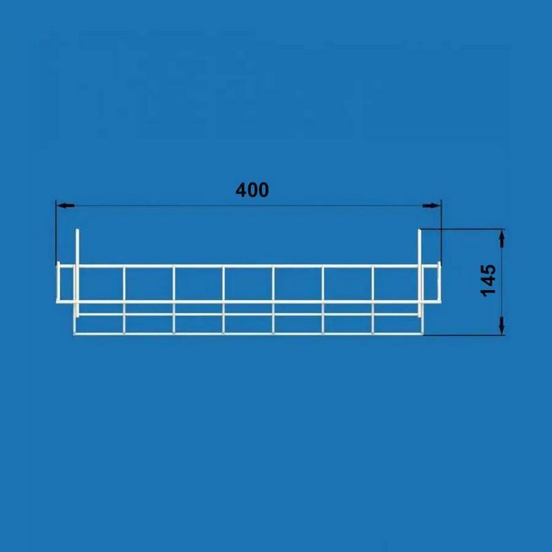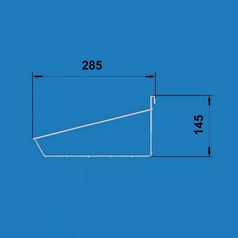 Корзина имеет два крючка, которые крепят её к торговой сетке с ячейками 50х50 мм или 100х100 мм.