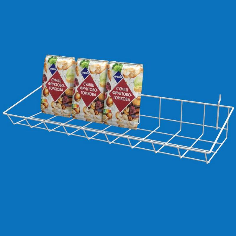 Сетчатая корзина предназначена для удобного размещения товаров на перфорированных стендах и стойках. Благодаря компактным размерам 500х180 мм подходит для использования в торговых залах, магазинах, мастерских и на складах.