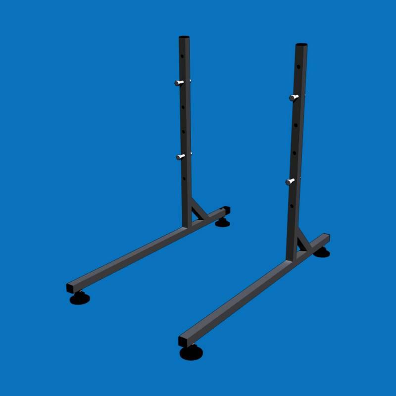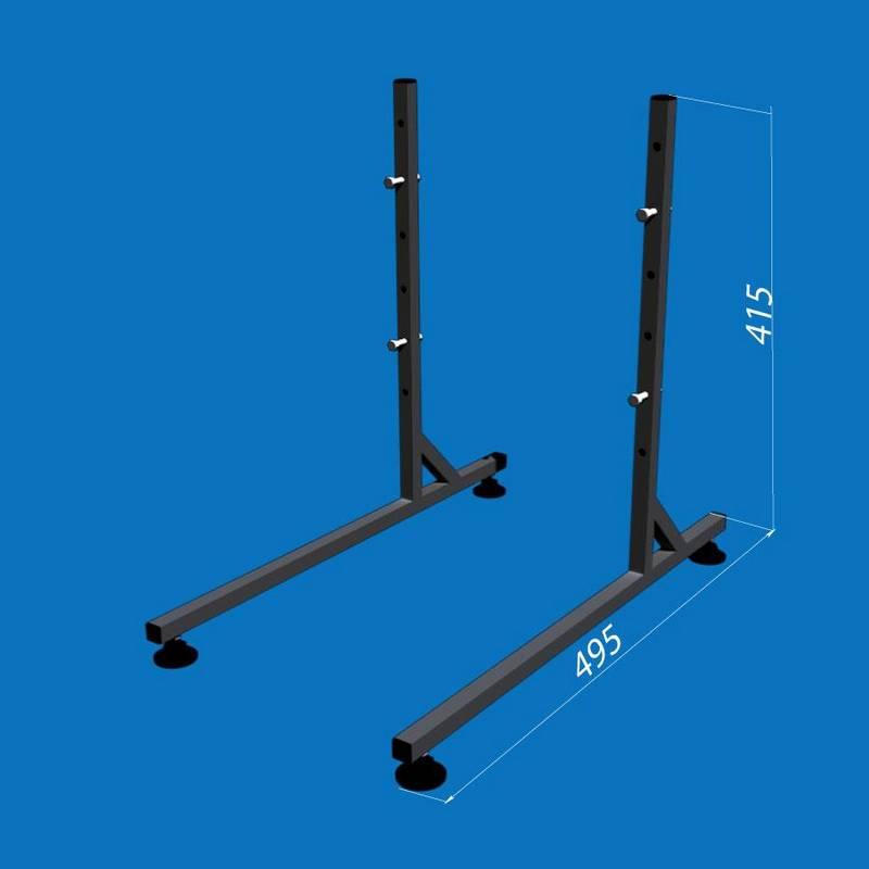 - К нижней части каждой опоры прикручиваются две винтовые регулируемые ножки. Это позволяет выровнять стойку на неровной поверхности и отрегулировать высоту.