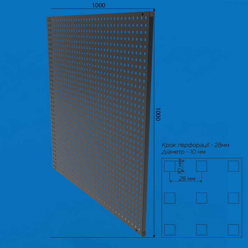 Перфорированная панель для инструментов 100х100 усиленная, S-1мм, ячейка 5х5
