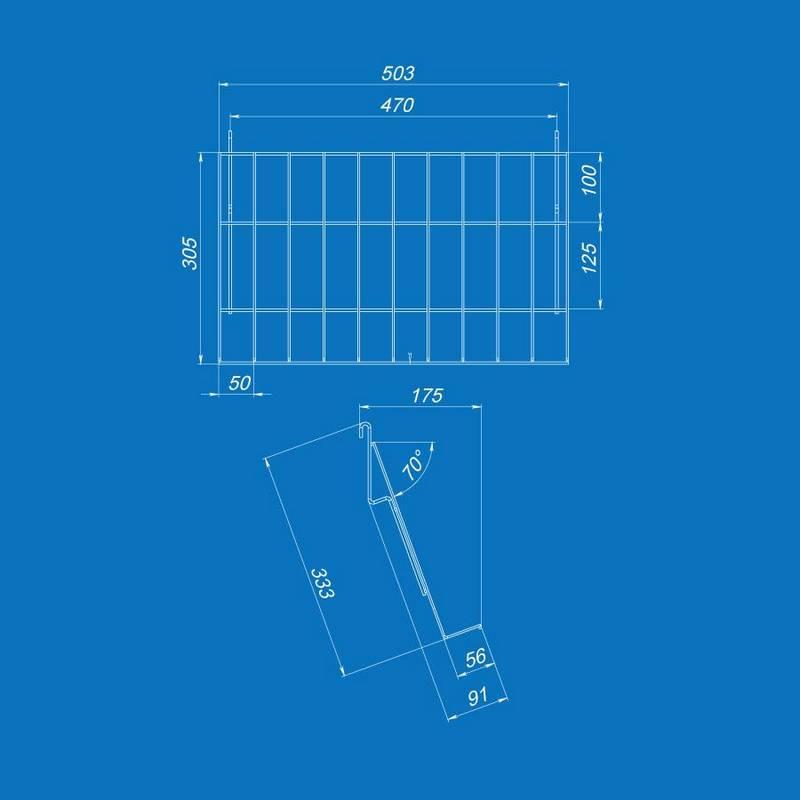 Полка наклонная на сетку 50 мм, угол наклона 70°