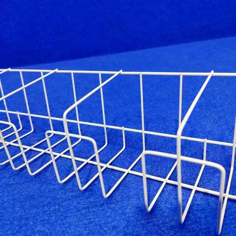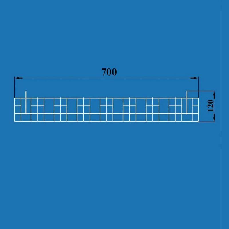 Изготовлена из стальной проволоки как цельная конструкция, окрашена в белый цвет методом порошкового нанесения. Малый вес, который составляет 300 грамм, позволяет составлять торговую витрину из большого количества сетчатых полок и экономить торговое пространство.