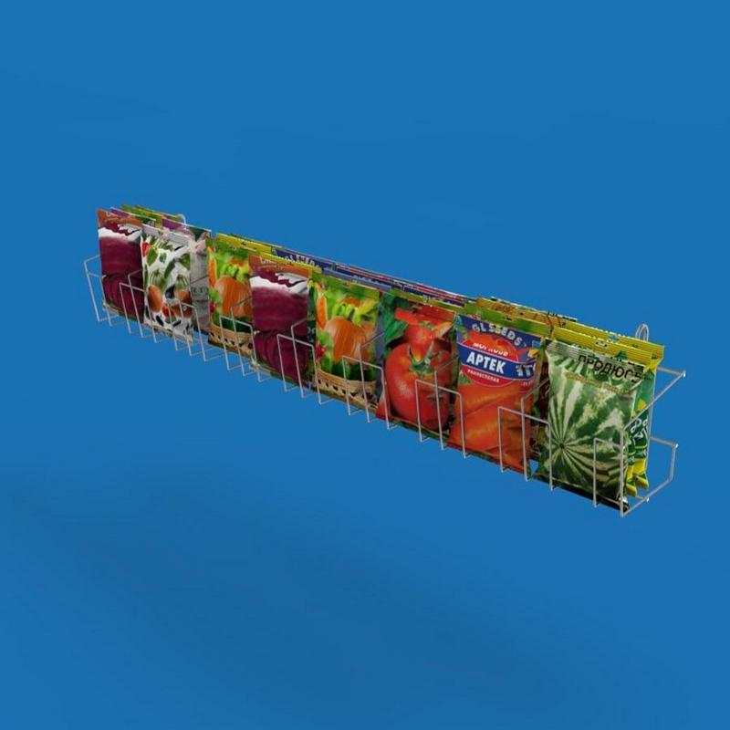 Полка сетчатая — это элемент торгового оборудования для продажи семян. Предназначена для горизонтальной выкладки семян, специй и товаров в похожей фасовке.