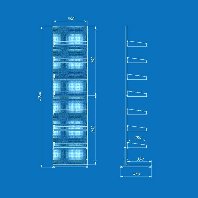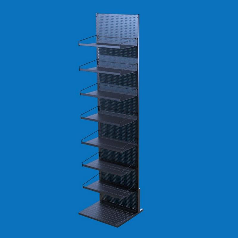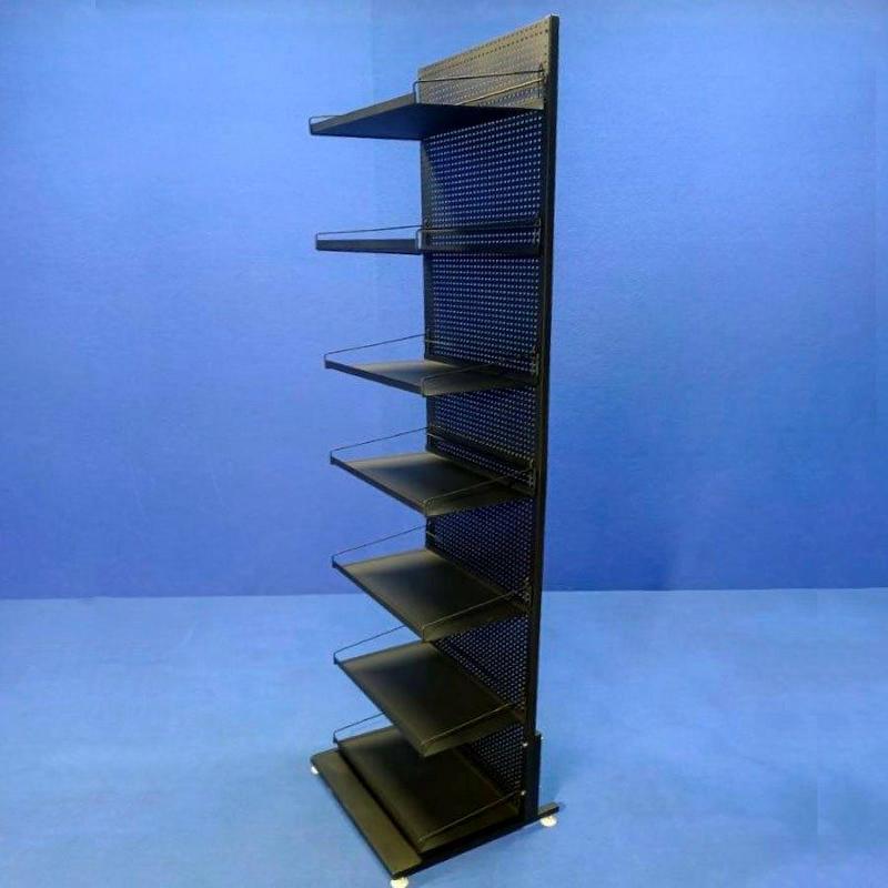 Торговый перфорированный стеллаж — универсальное и практичное решение для размещения широкого ассортимента товаров в торговом зале. Конструкция включает 7 полок, что позволяет удобно комбинировать выкладку товаров разного формата и размера.
