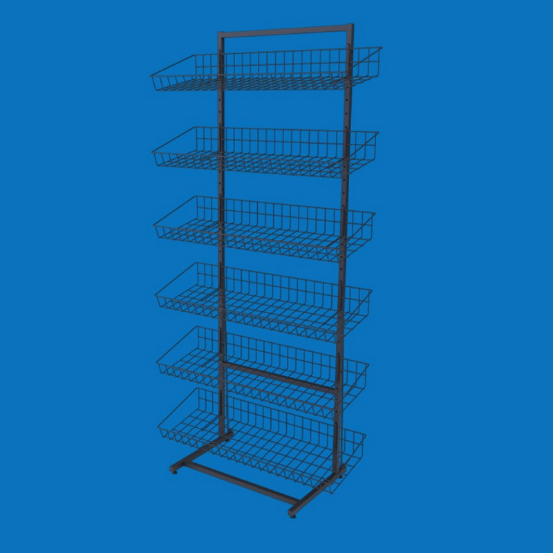 Шесть корзин предоставляют удобное пространство для размещения товаров, обеспечивая прекрасную видимость и легкий доступ. Это идеальное решение для упорядоченного и привлекательного отображения товаров.