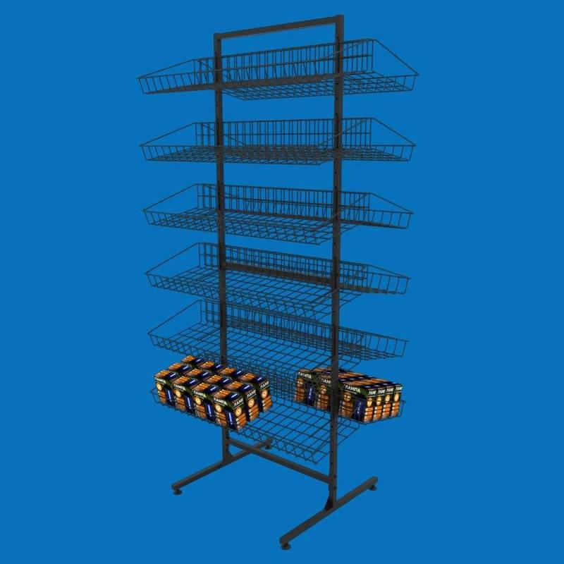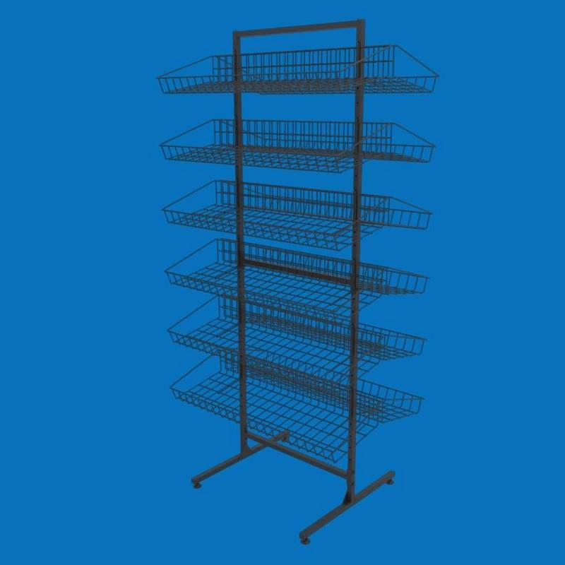 Торговый сетчатый стеллаж с наклонными корзинами «Ева-60» двухсторонний в черном цвете - это стильное и функциональное решение для оформления вашего торгового пространства. Прочная металлическая конструкция и лаконичный черный цвет делают этот стеллаж идеальным выбором для демонстрации самых разных товаров, от продуктов питания и бытовой химии до аксессуаров и промышленных товаров.