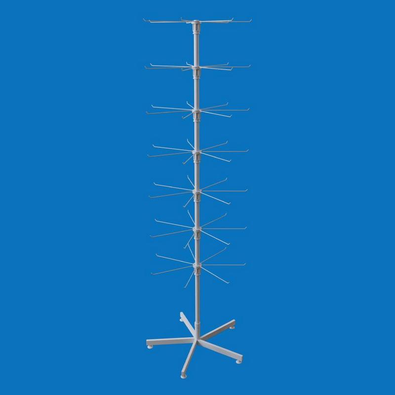 Практичная металлическая стойка с 5-лучевой опорой, оснащённая вращающимися ярусами с крючками. Каждый ярус можно крутить отдельно и легко регулировать по высоте. Количество ярусов — на выбор, в зависимости от товара. Данная стойка состоит из 7 ярусов.