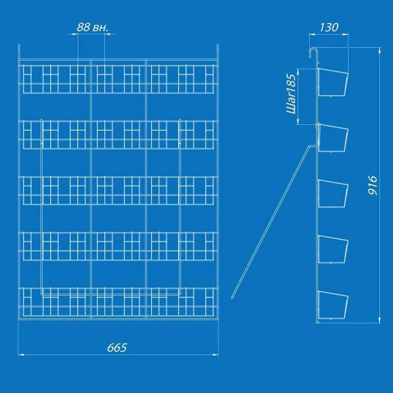 Компактный и удобный стенд, предназначенный для демонстрации и продажи фасованных семян, специй и других товаров. Оснащён 35 широкими карманами, расположенными на 5 сетчатых полках (по 7 карманов в каждом ярусе).