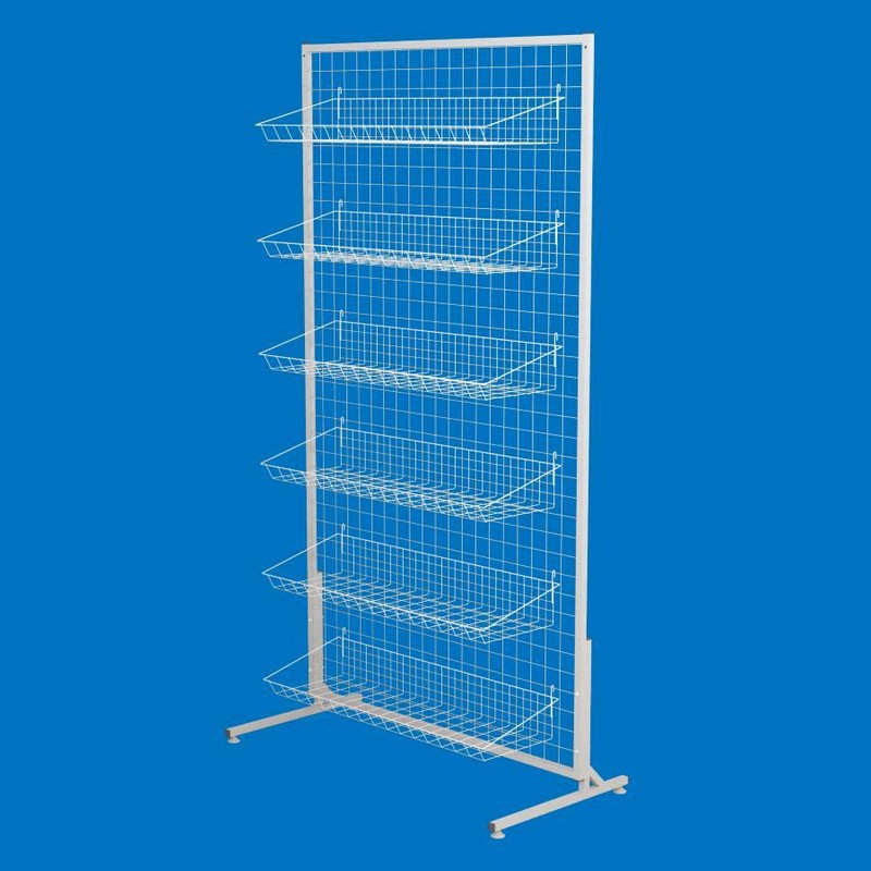 Стойка-сетка 100х180 с корзинами 85х25 (6 штук), белая