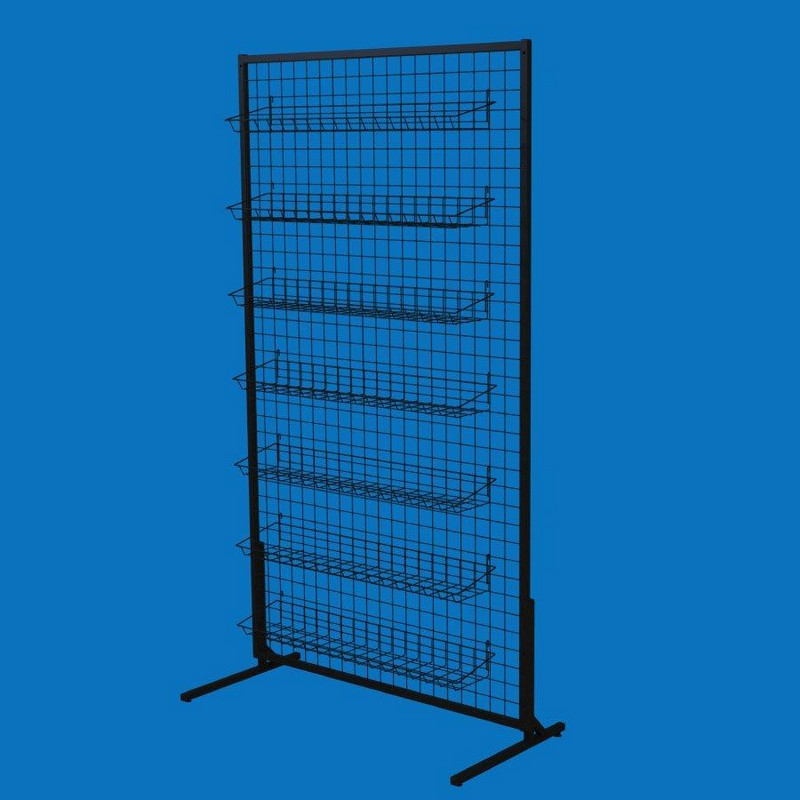 Стойка-сетка 100х180 с корзинами 85х15 (7 штук), черная