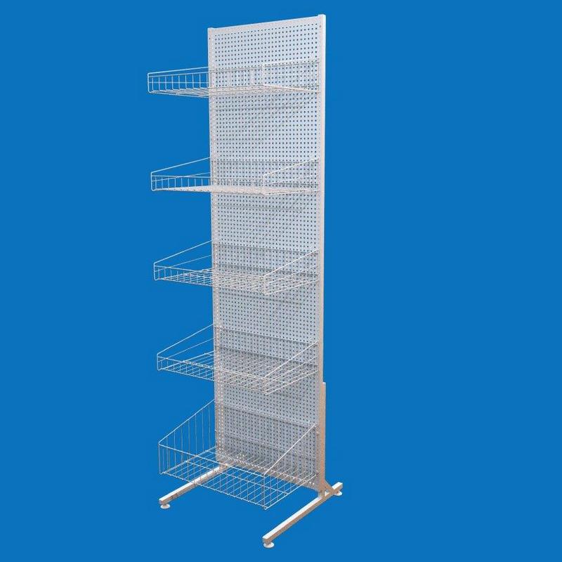 Перфорированная стойка для магазина — это универсальное торговое оборудование, которое позволяет удобно размещать товары с помощью корзин.
