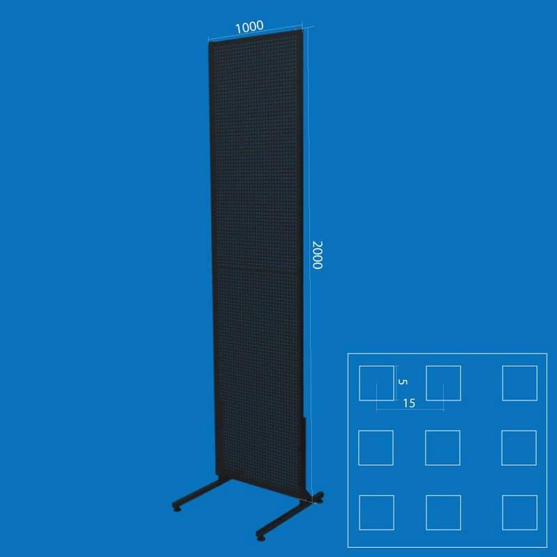 Торговая стойка с перфорацией устойчива, проста в сборке и подходит для использования в магазинах, на складах, рынках и выставках.