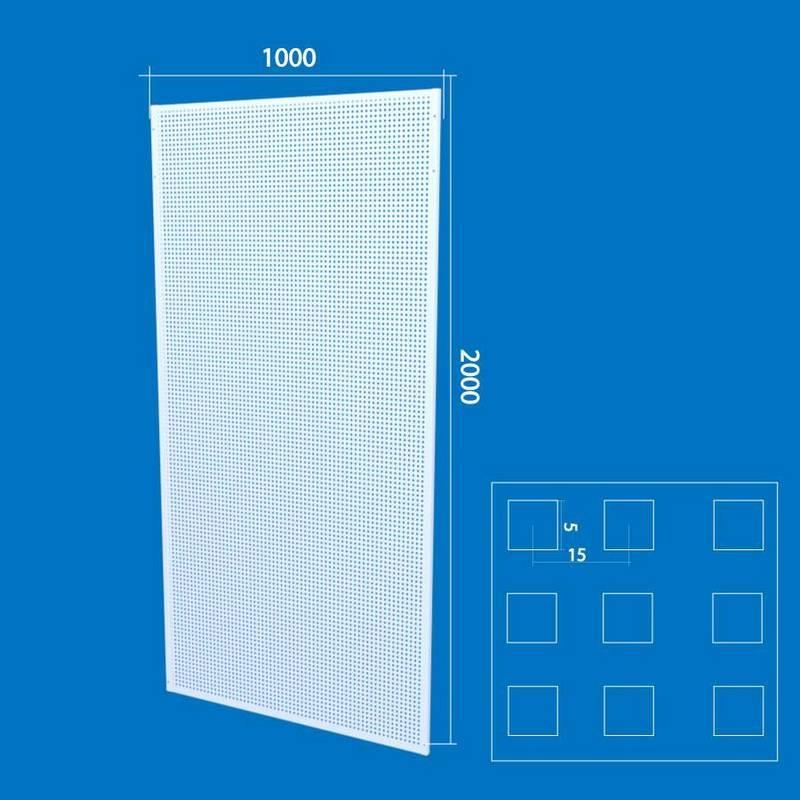 Торговая панель с перфорацией представляет собой универсальное торговое оборудование, предназначенное для удобного и эффективного размещения товаров с помощью навесных элементов. Панель изготовлена из прочного металлического материала и покрыта защитным слоем, обеспечивающим долговечность и устойчивость к механическим повреждениям. Перфорация позволяет легко и быстро изменять расположение крючков, полок и других элементов, что делает панель очень гибкой в использовании.