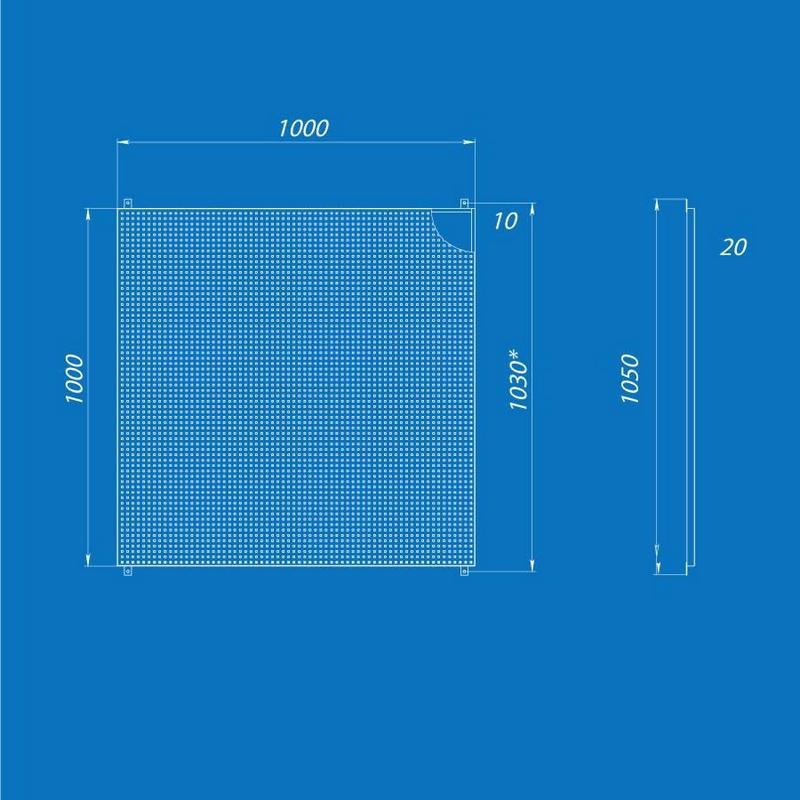 Торговая перфорированная панель100х100 с отверстиями для крепления, S-0,8 мм