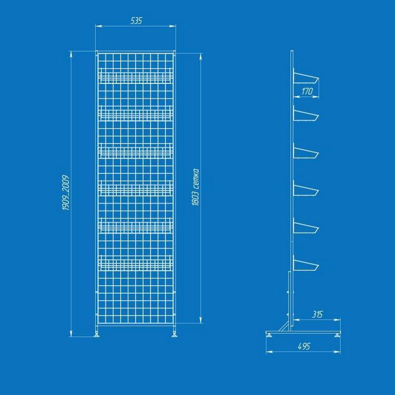 Торговый стеллаж Ева с листовыми полками (6 шт.) Удобный и практичный стеллаж для магазинов, торгов..