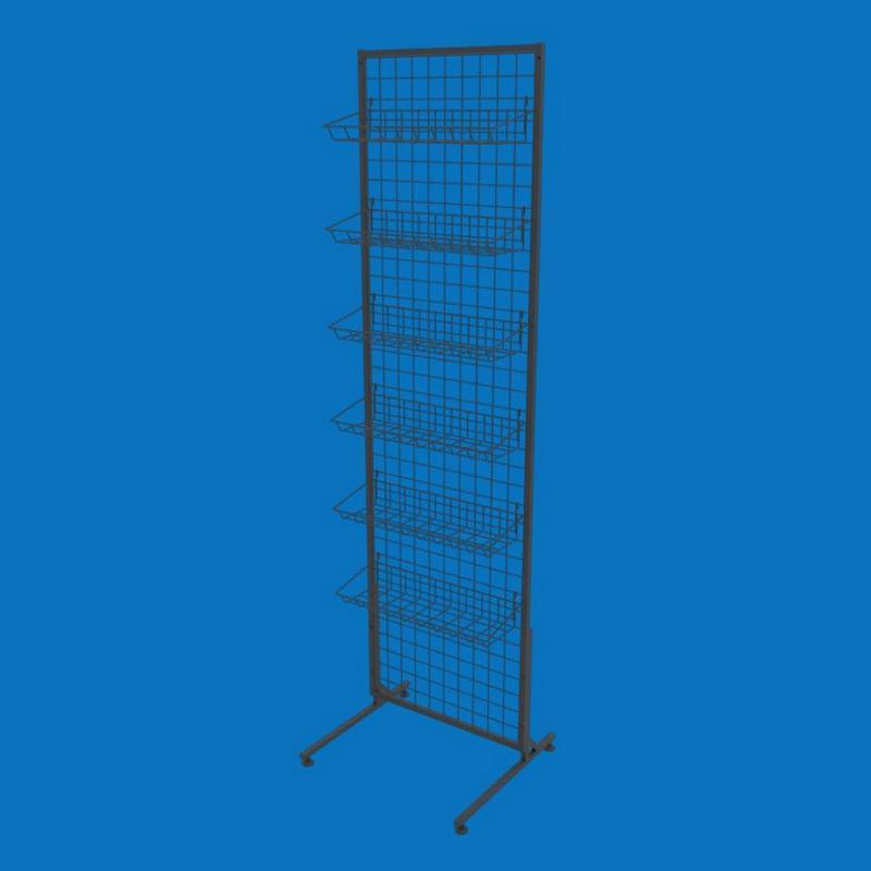 Торговая стойка-сетка с 6 навесными корзинами в черном цвете