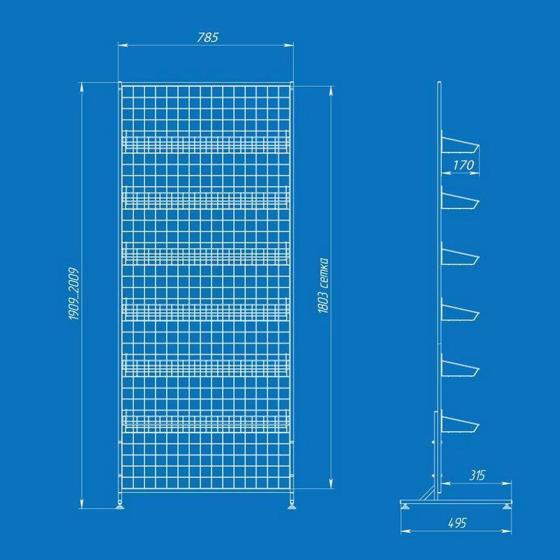 Торговый стеллаж Ева с листовыми полками (6 шт.) Удобный и практичный стеллаж для магазинов, торгов..