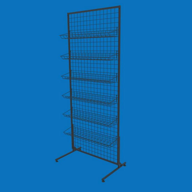 Торговая стойка-сетка с 6 навесными корзинами в черном цвете