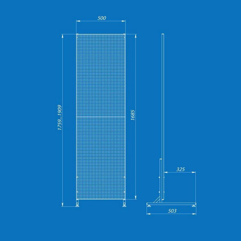 Перфорированная торговая стойка 50×185 см — универсальное решение для магазинов и торговых точек. На стойке можно размещать крючки, полки и корзины, что обеспечивает удобную и наглядную выкладку товара.