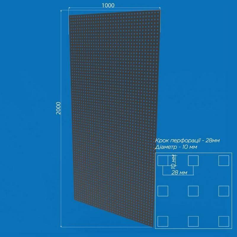 Перфорированный лист для инструментов окрашенный 100х200, ячейка 10х10 (S-1 мм) черный
